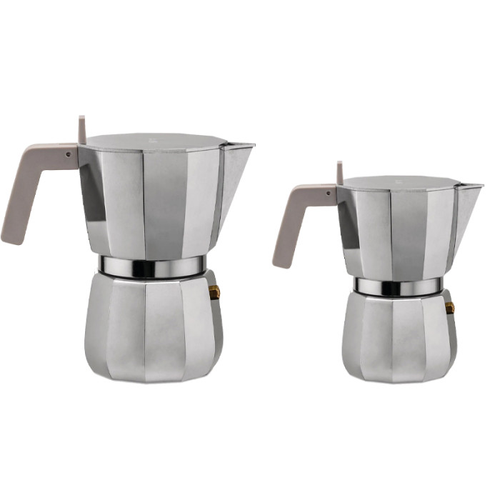 Alessi Caffettiera Moka Espresso in Alluminio con coperchio piatto 1 e 3 tazze