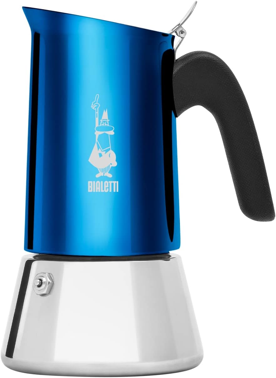 La classica caffettiera Moka di Bialetti originale in acciaio inox 18/10 inossidabile con manico anti scivolo e anti scottature oggi in una nuova veste.
