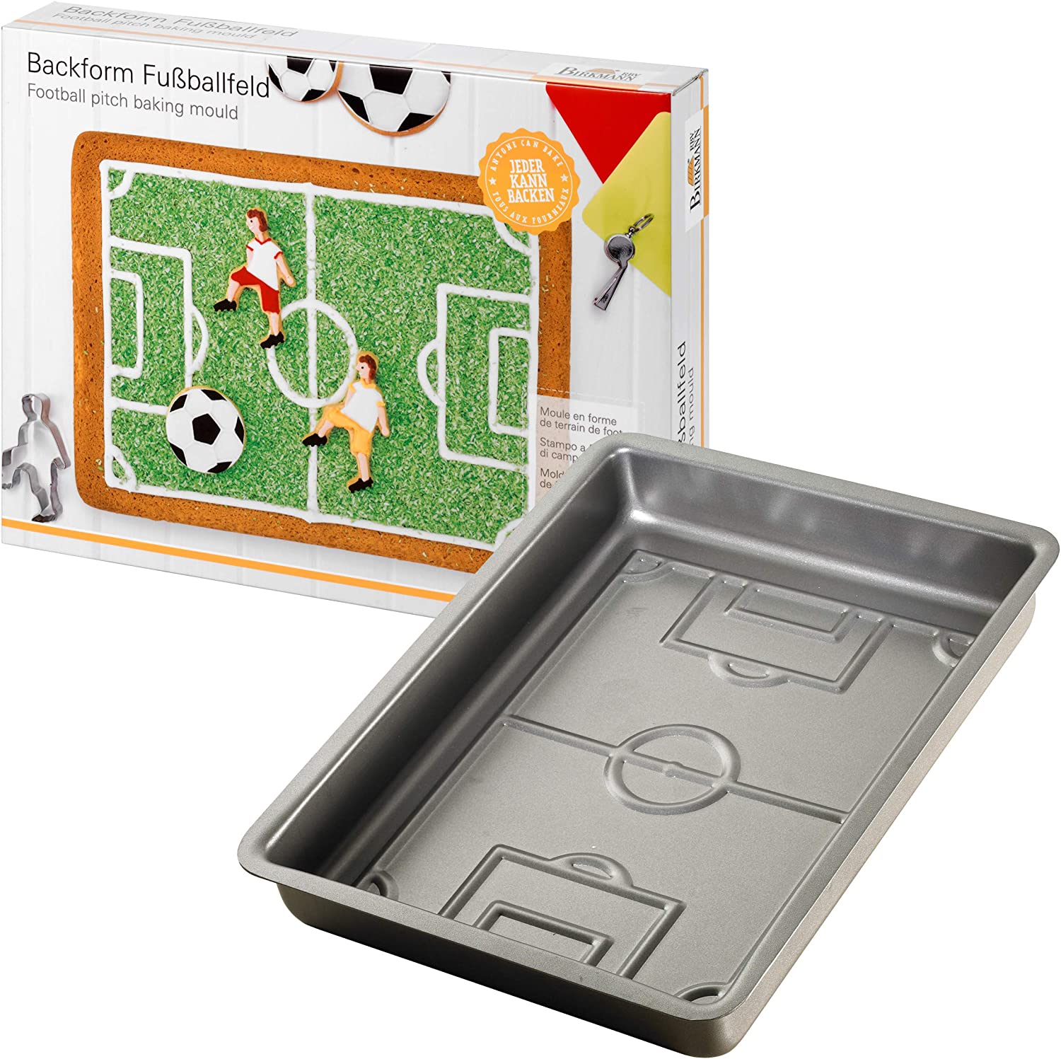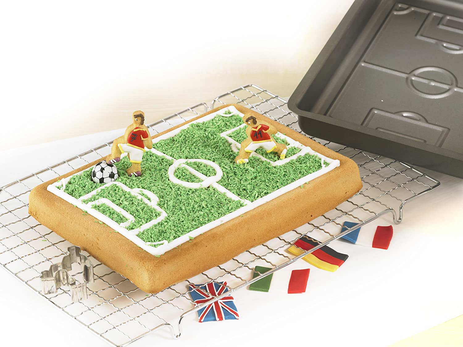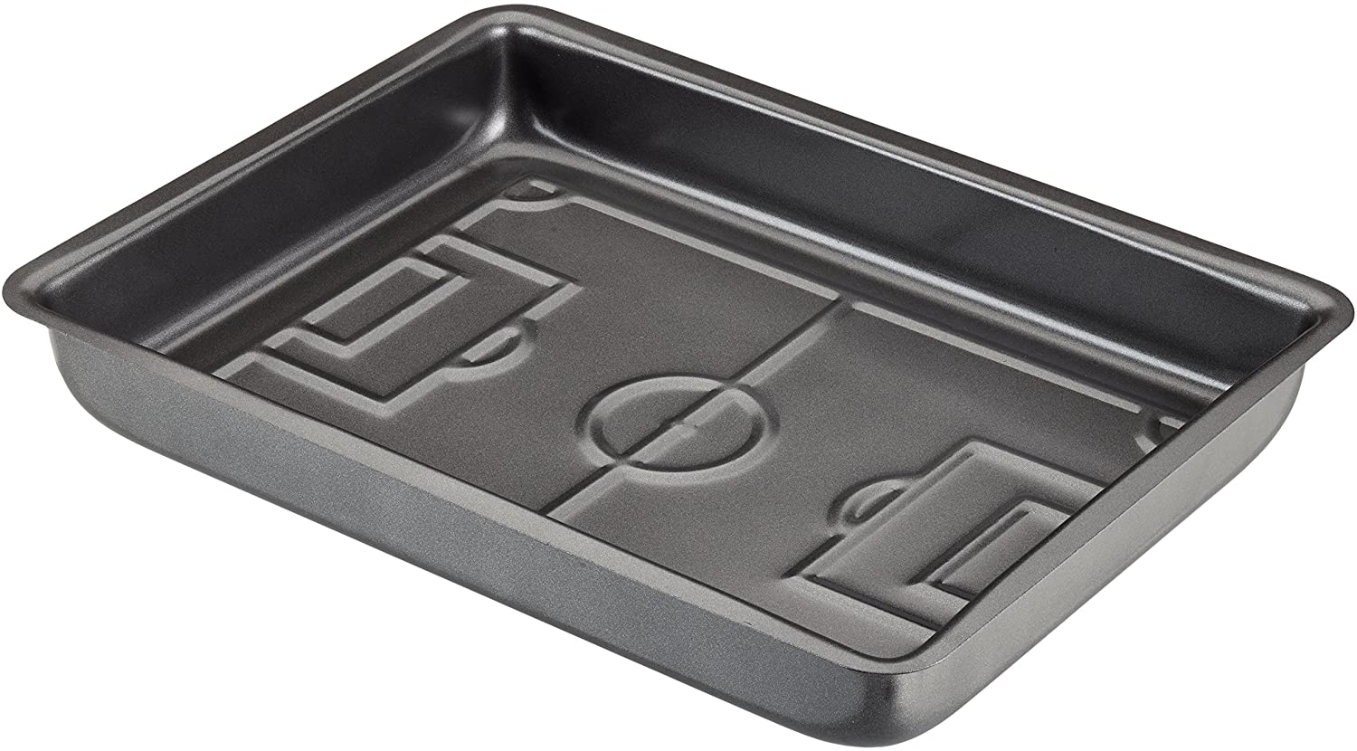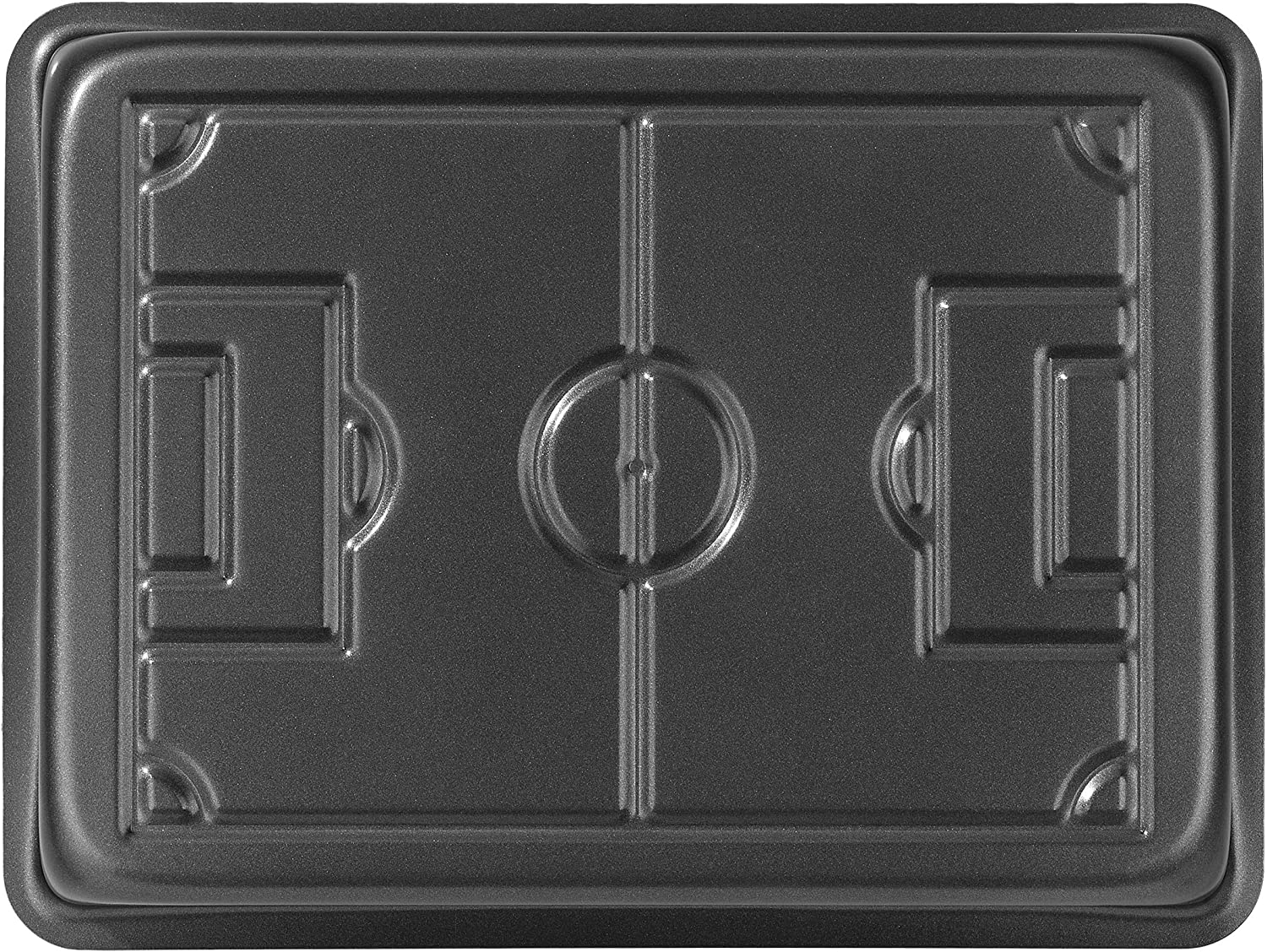 La tortiera che riproduce il campo di calcio in alluminio rivestito con un antiaderente di alta qualità.