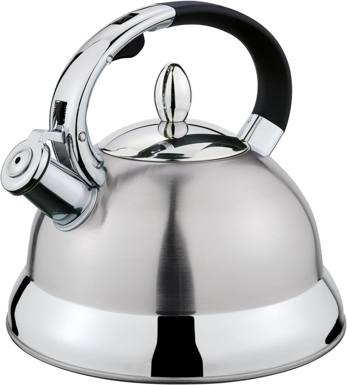 Adatto a qualsiasi piano cottura (gas, vetroceramica, elettrico o induzione), è dotato di un fischietto che si potrà sollevare grazie al pulsante collocato sotto il manico, evitando il rischio di fastidiose scottature.