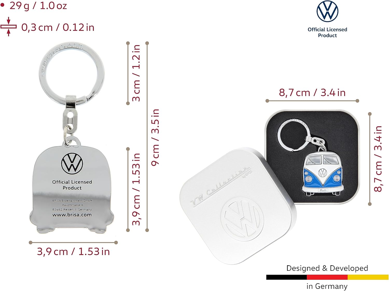 Confezionato in una elegante scatola di metallo con lo storico logo VW in rilievo
