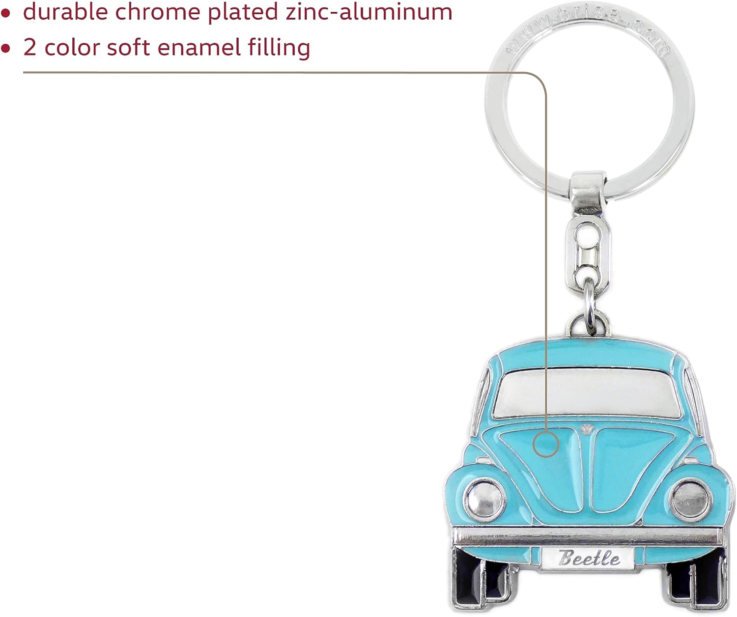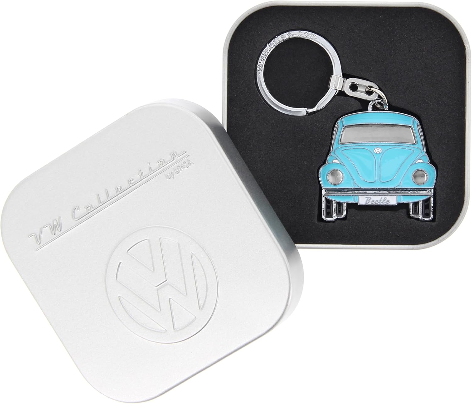 Questo iconico portachiavi è interamente azzurro, con dettagli argentati e il logo “Beetle” sulla targa.