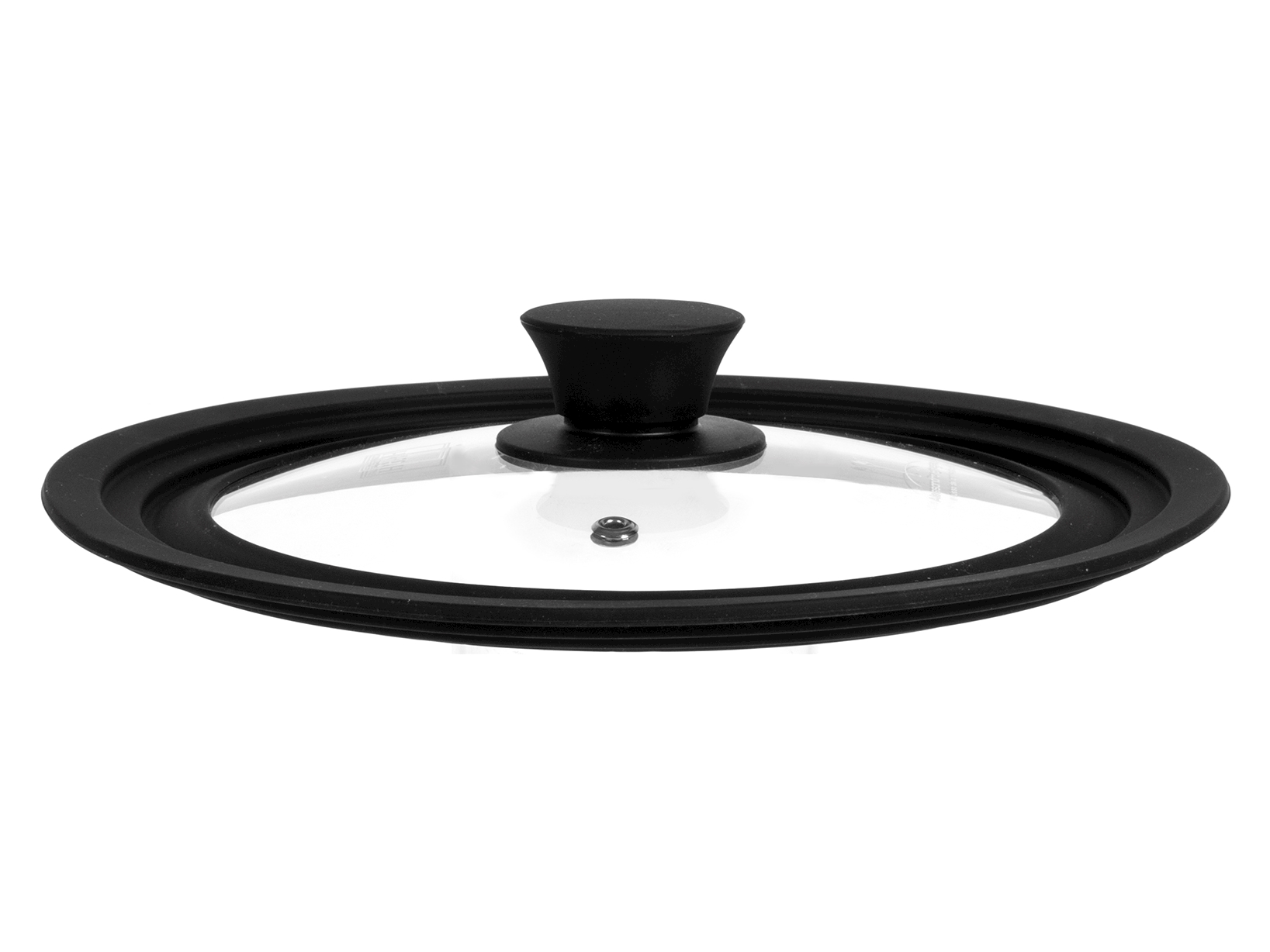 Un coperchio in vetro ma con la bordatura in silicone di tre misure e con la sua valvola di sfiato.