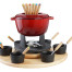 EVA fonduta in ghisa rossa con base in legno e ciotoline 24 pezzi