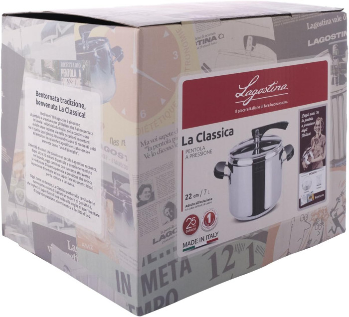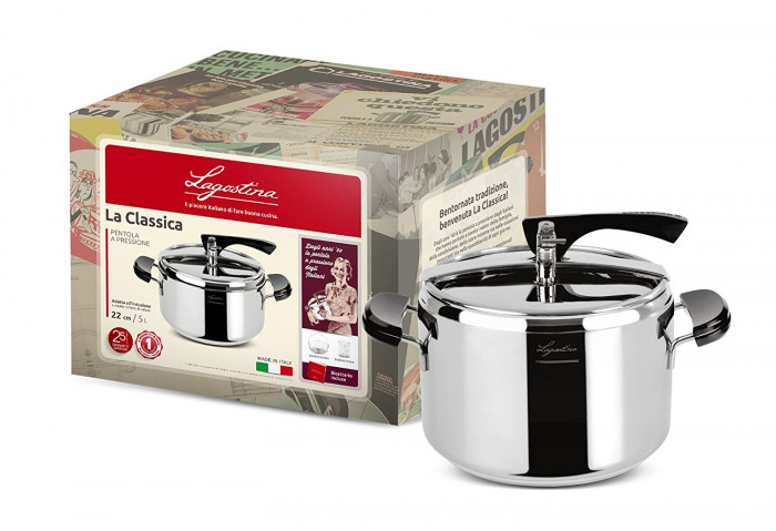 Lagostina La Classica Pentola a Pressione con Cestello ed Ecodose, Ø 22 cm, 7 lt