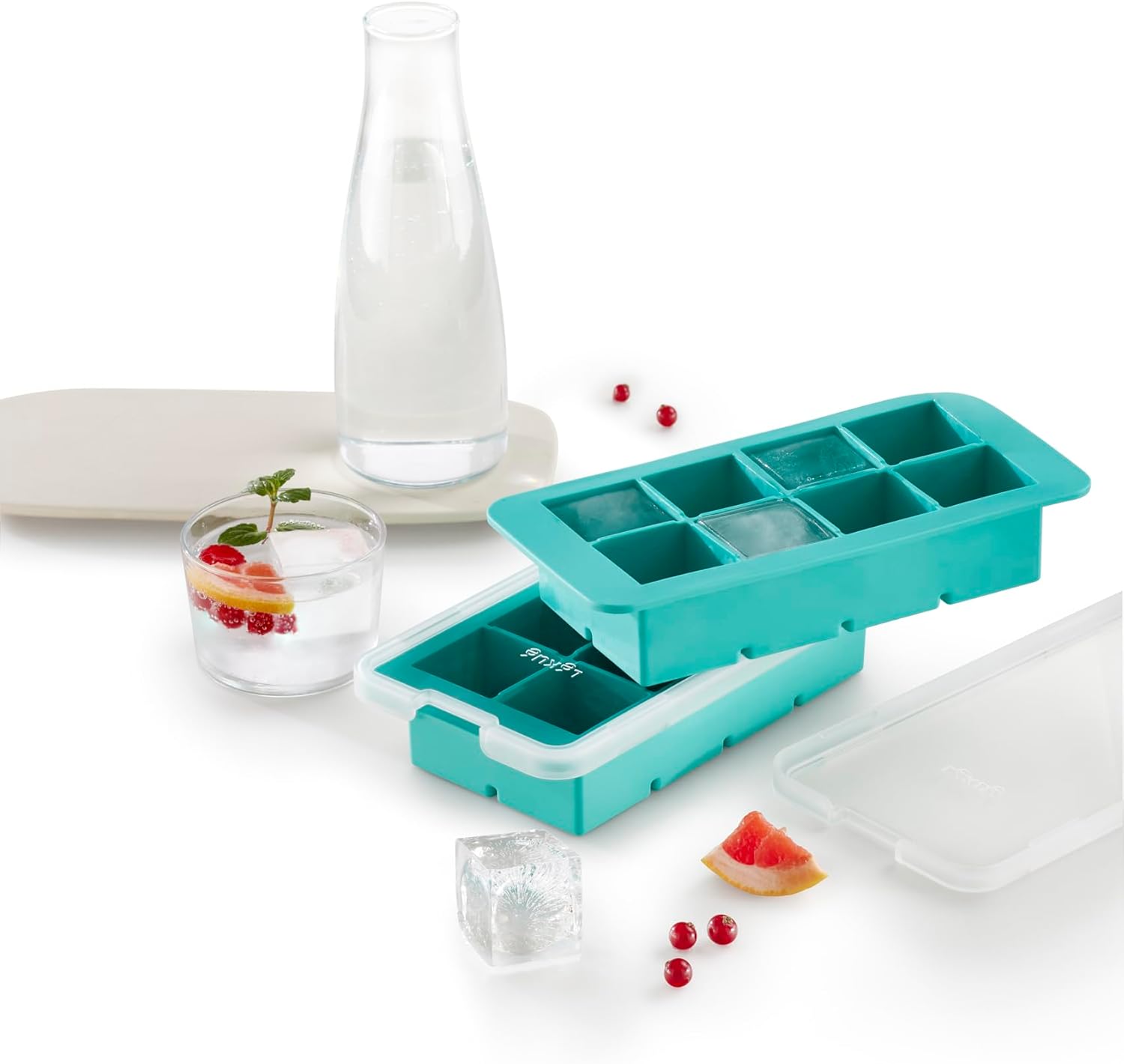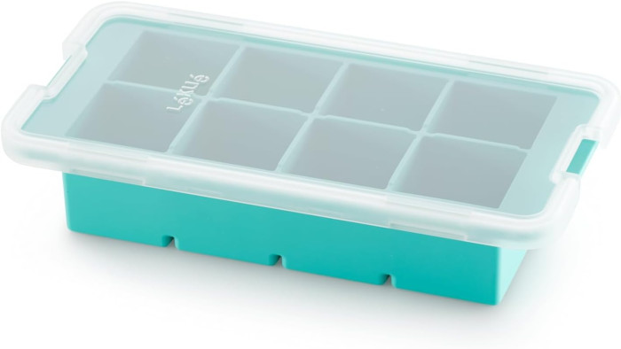 Il coperchio con chiusura ermetica ti permetterà di impilare gli stampi per il ghiaccio in silicone in tutta sicurezza evitando che cadano e con molto più ordine in freezer.
