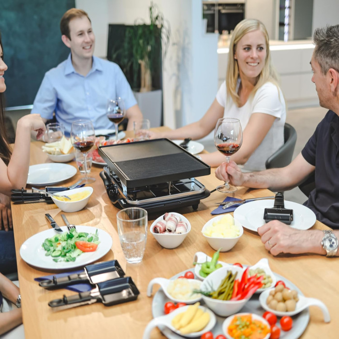 La Raclette di Steba Schwarz RC 28 è perfetta per tutti i buongustai che si vogliono regalare una bellissima serata in compagnia mangiando con gusto formaggio, verdure e carni perfettamente cucinate.