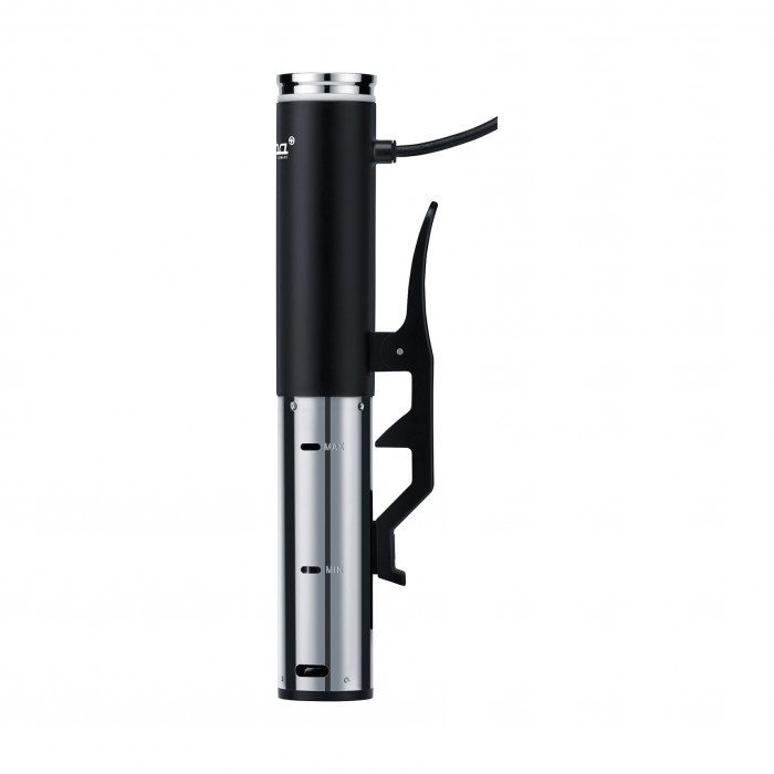 L’apparecchio Sous-Vide ha la classificazione di impermeabilità IPX7 e riscalda 20 litri d’acqua ad una temperatura di 56°C in circa 45 minuti