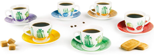 Excelsa Cactus Set 6 Tazzine caffè con Piattino in Porcellana